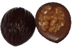 Demi-noix en chocolat noir avec caramel, surmontée d'un cernau de noix