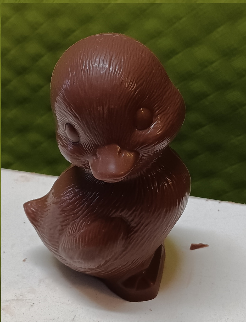 Petit caneton réaliste en chocolat noir, lait ou blanc