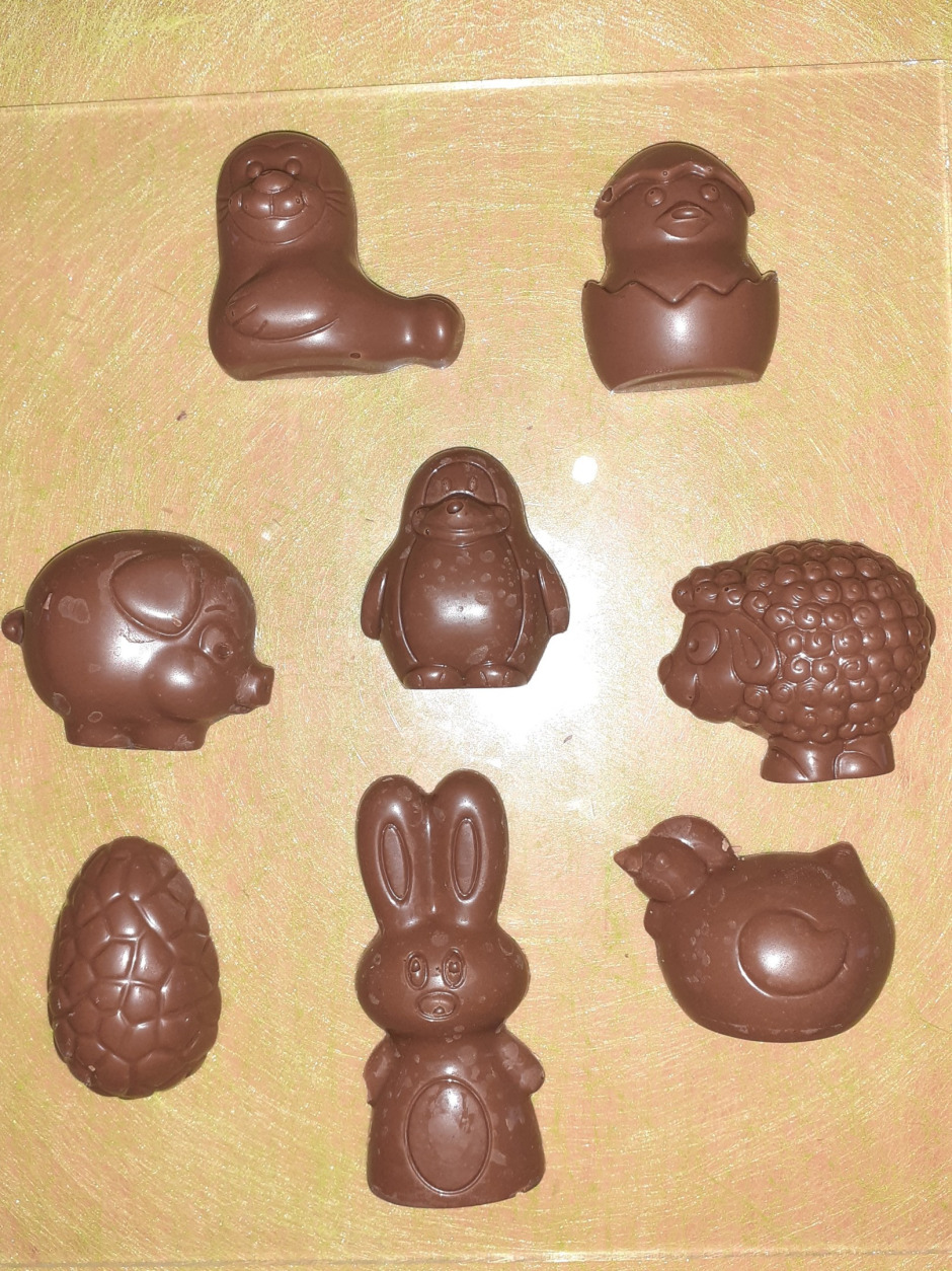 Tous les mélanges de chocolat possibles. Des fruits secs peuvent être ajoutés à la plaque (airelles, raisins secs, noisette, etc.). Poule en forme de poire seule 2.80€