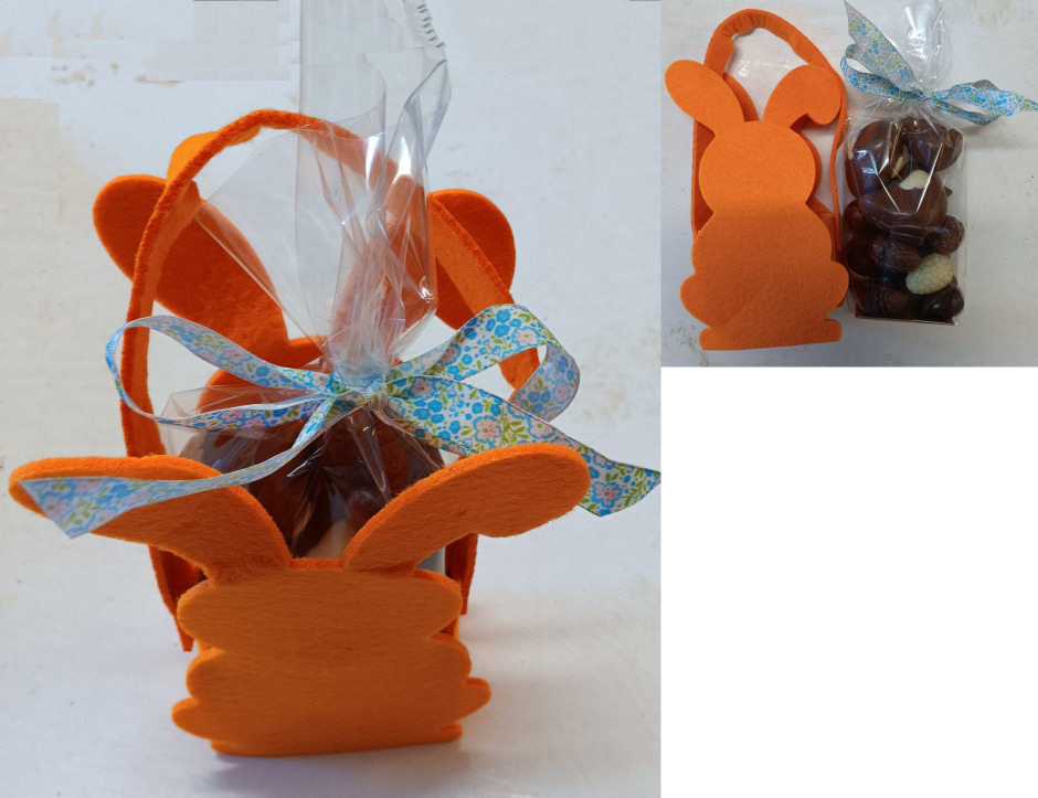 Sac en feutre avec 200g d'oeufs et de petites formes au choix, ici 270g de chocolat