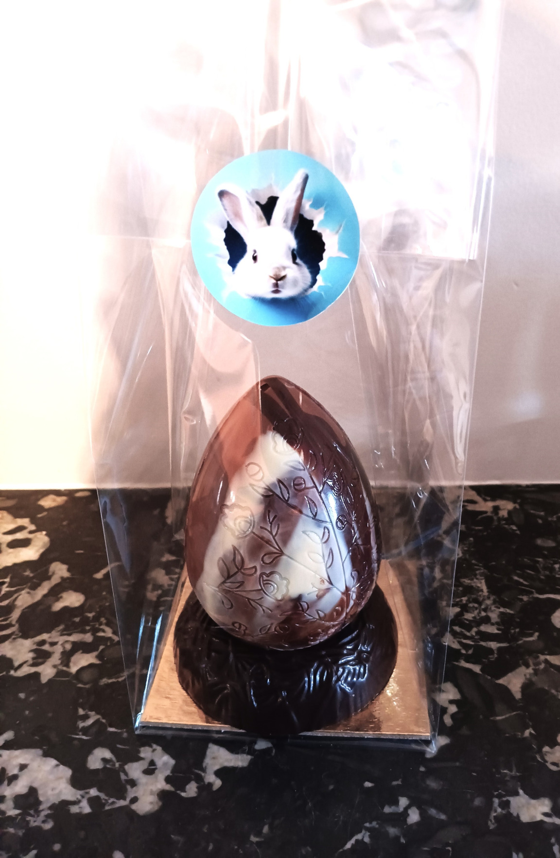 Maison en chocolat. Oeufs en sachet compris dans la maison