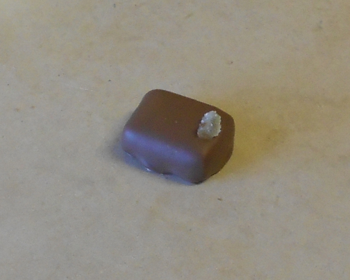 Ganache à la violette, trempée dans du chocolat noir