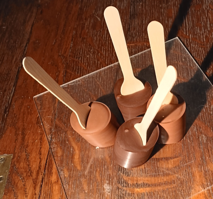 Gobelet en chocolat noir ou lait avec 100 g de pralines et une sucette en chocolat. Prix : 9,50€